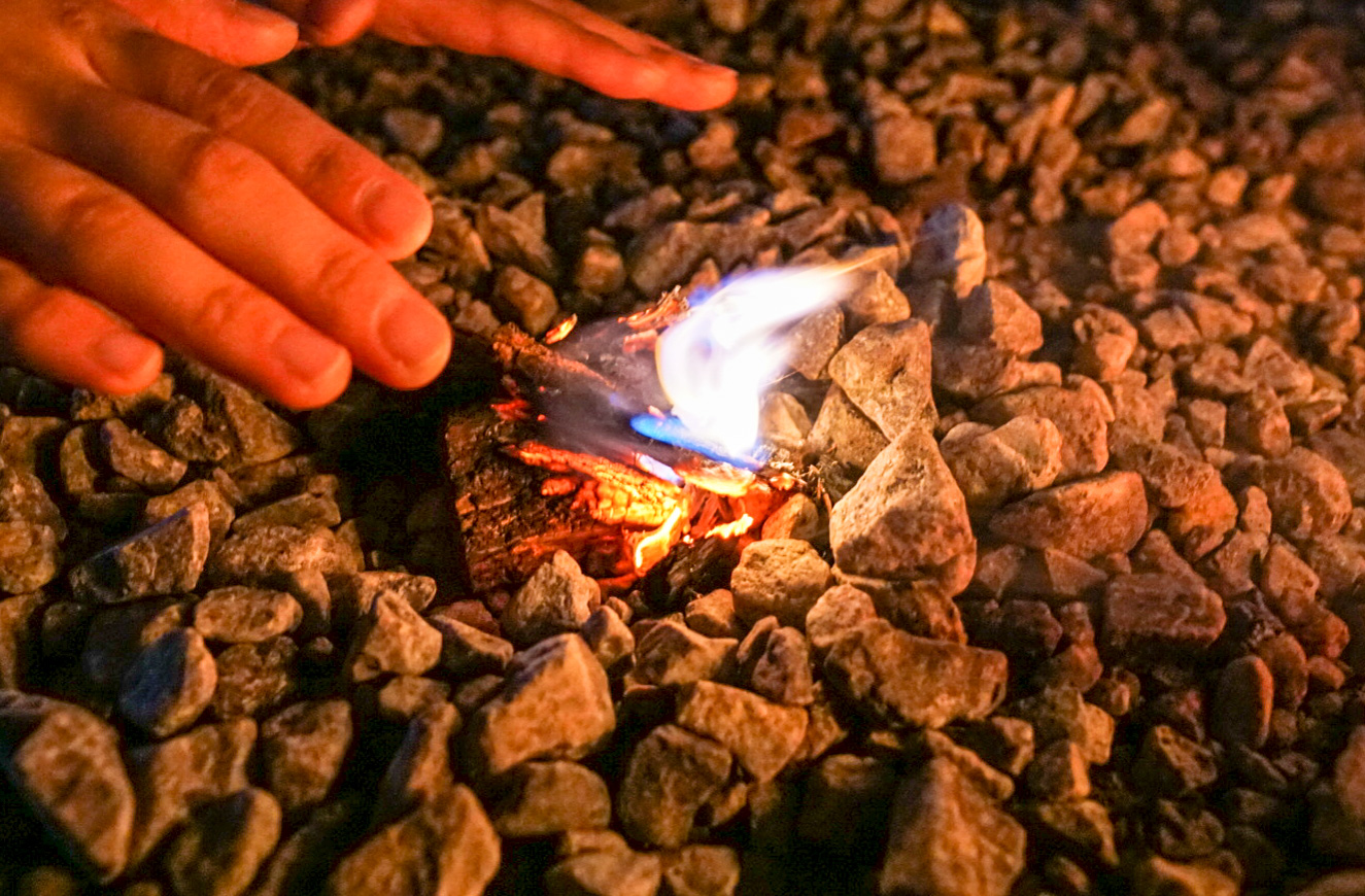 파쇄석이 작아서 불이 커보이는 것 같다.