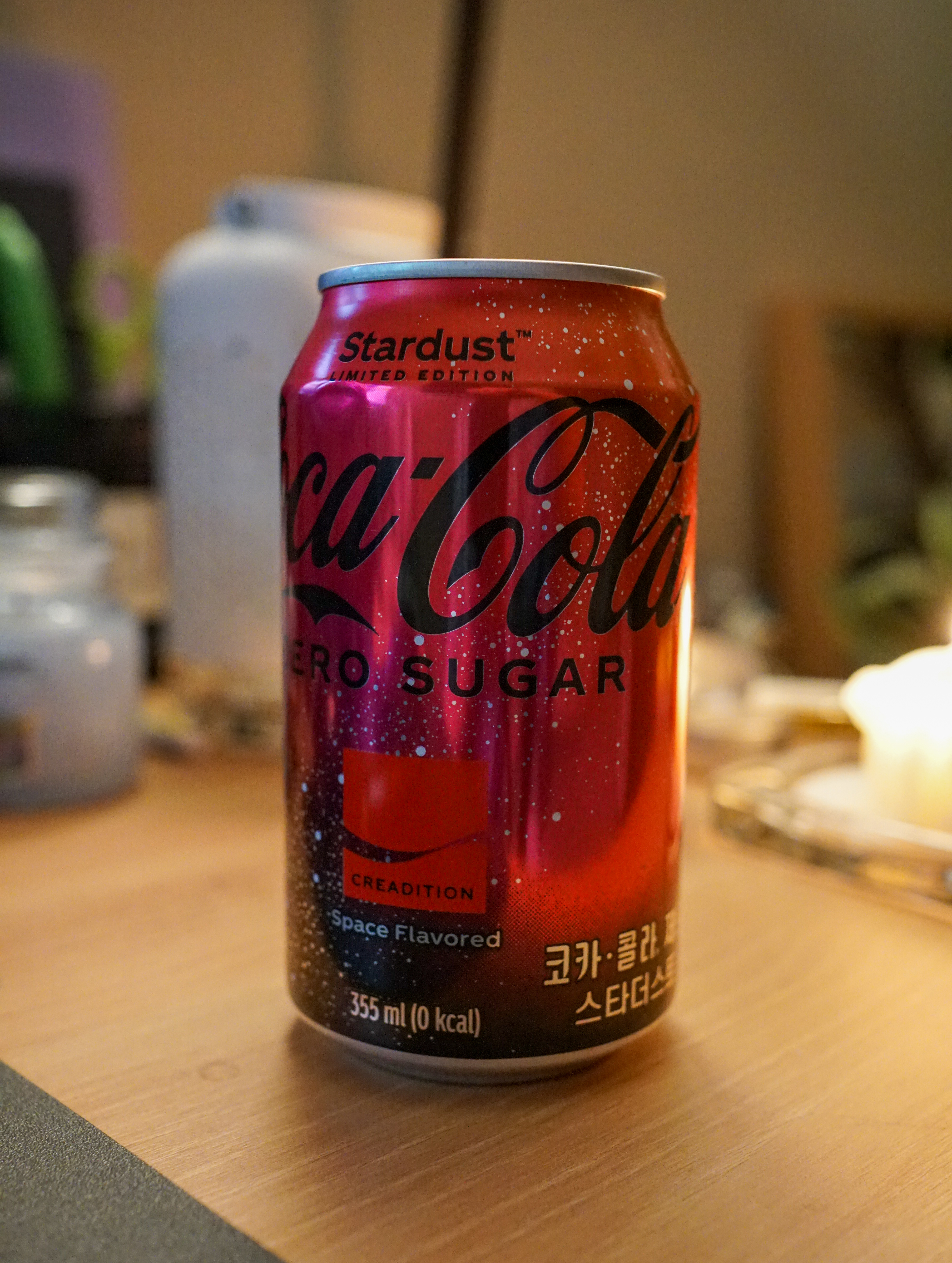 캔은 일반 콜라랑 미슷하지만 우주를 배경에 그려둬서 뭔가 더 이뻐보인다