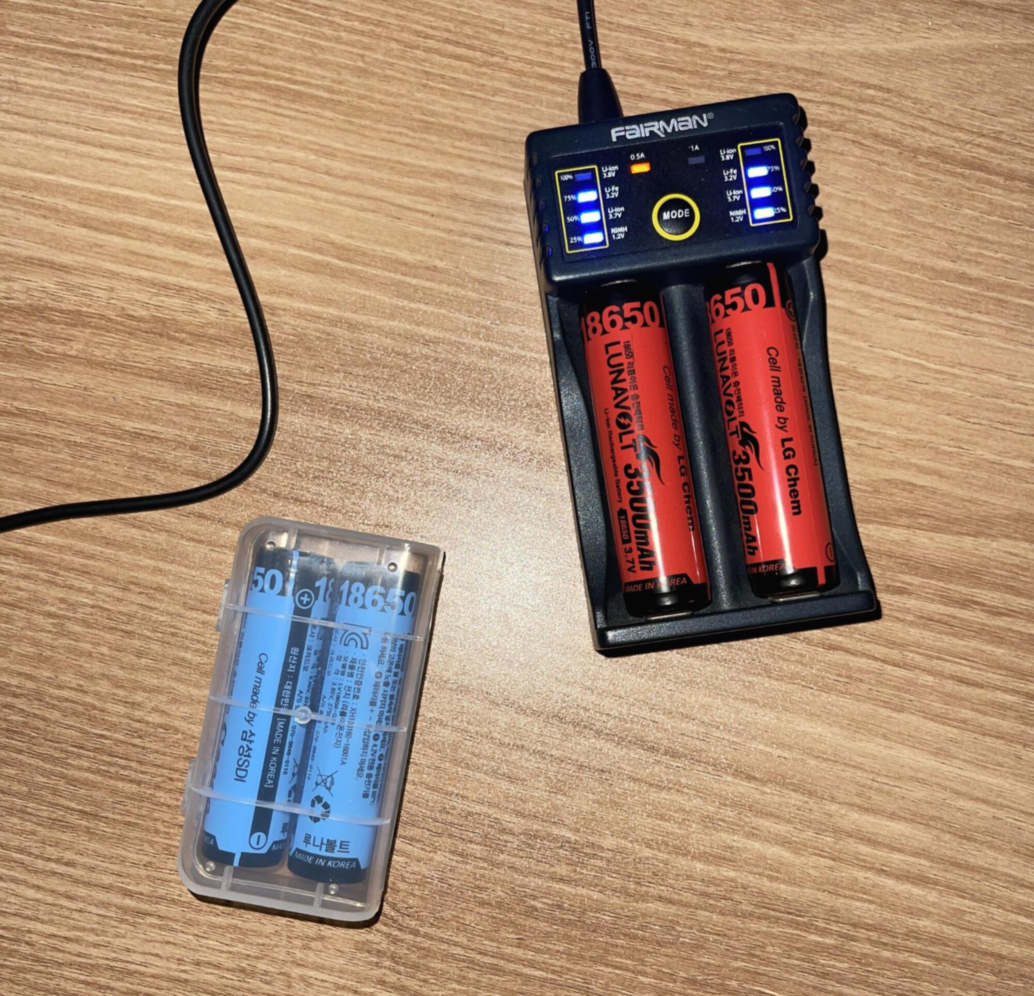 3500mAh, 2900mAh 4개를 2구짜리 충전기로 다 충전하려고 하니까 시간이 생각보다 오래 걸렸다.