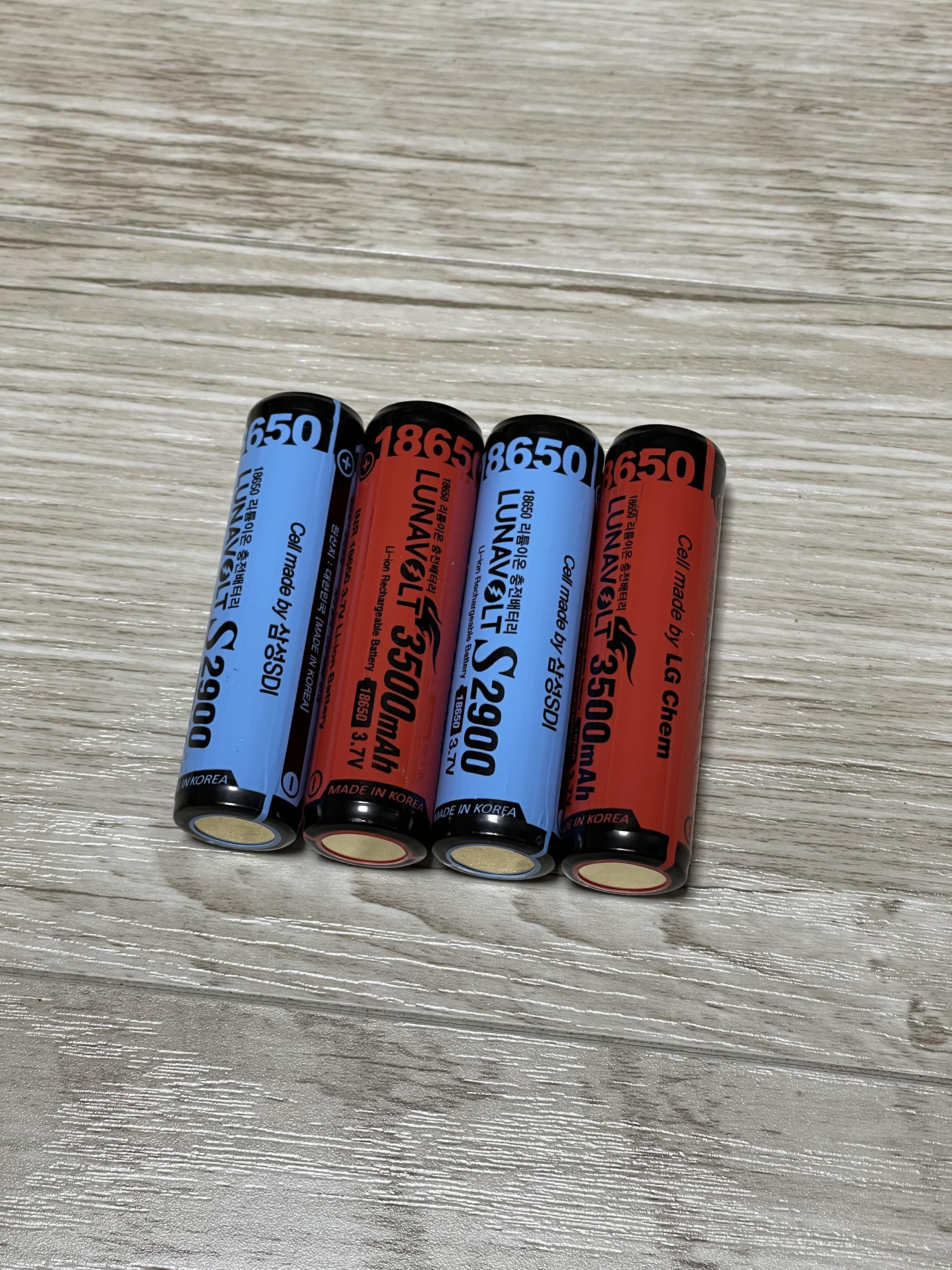 물론 둘 다 최대밝기는 거의 사용하지 않지만, 루멘에 맞게 각각 3500mAh, 2900mAh으로 충전지를 준비했다.